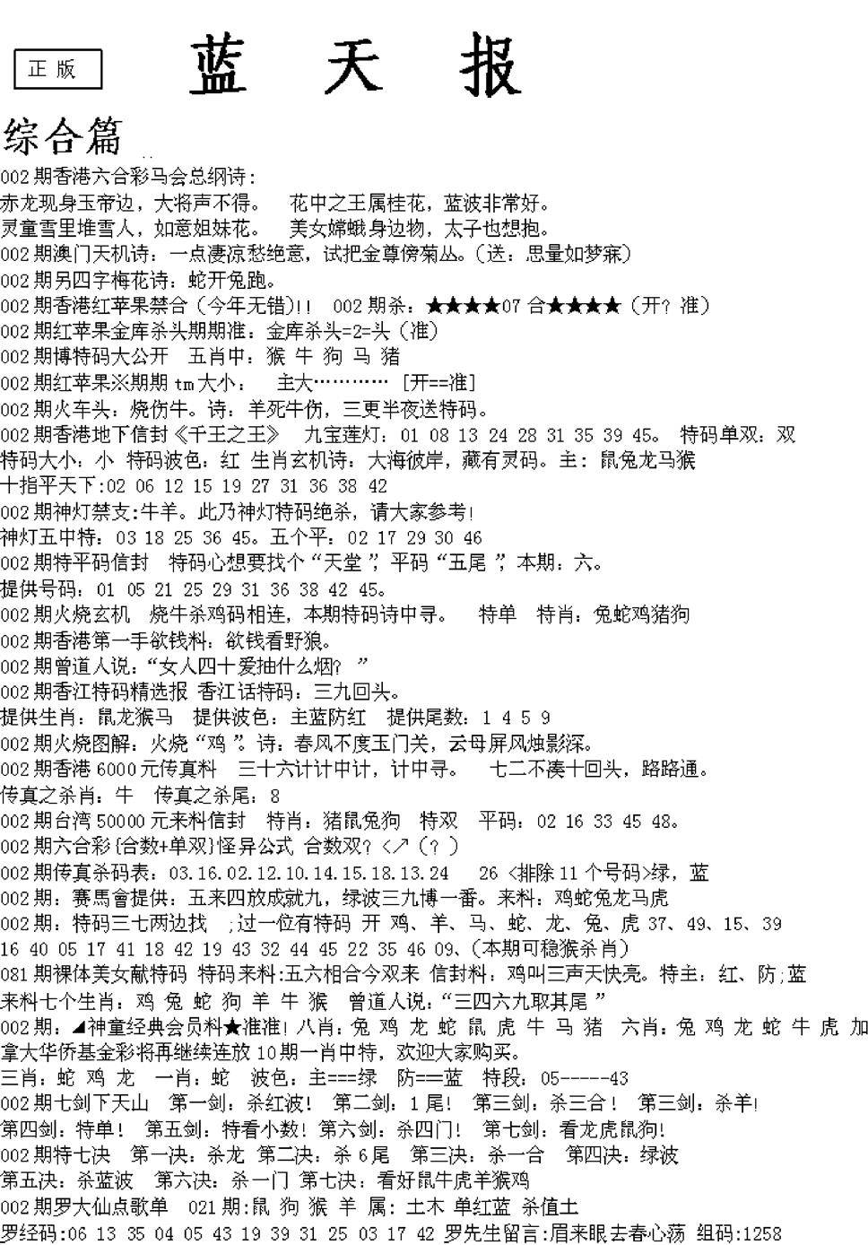 老版天机报