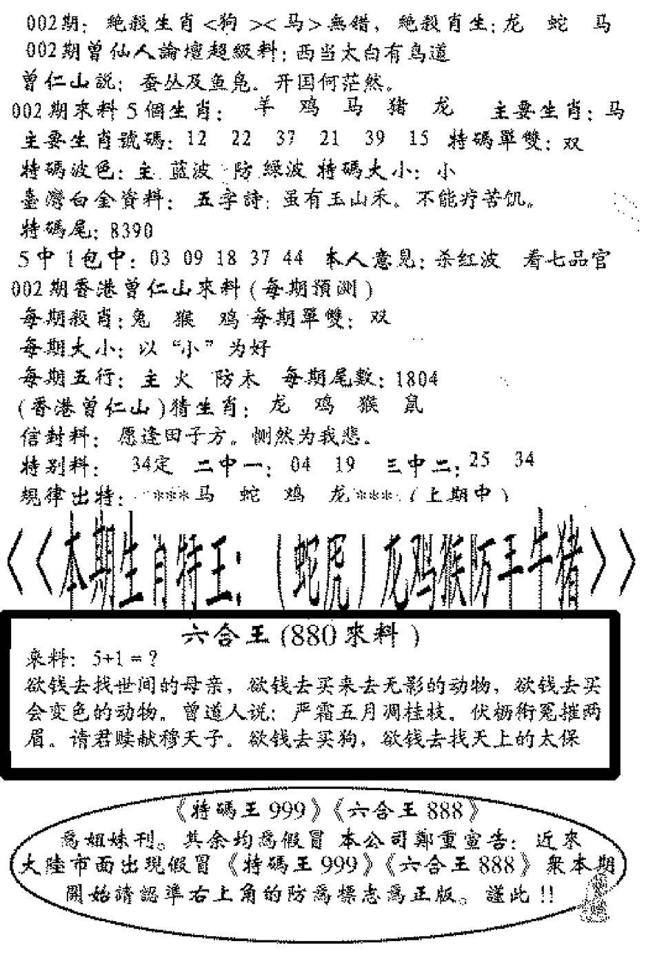 另版六合禅机A