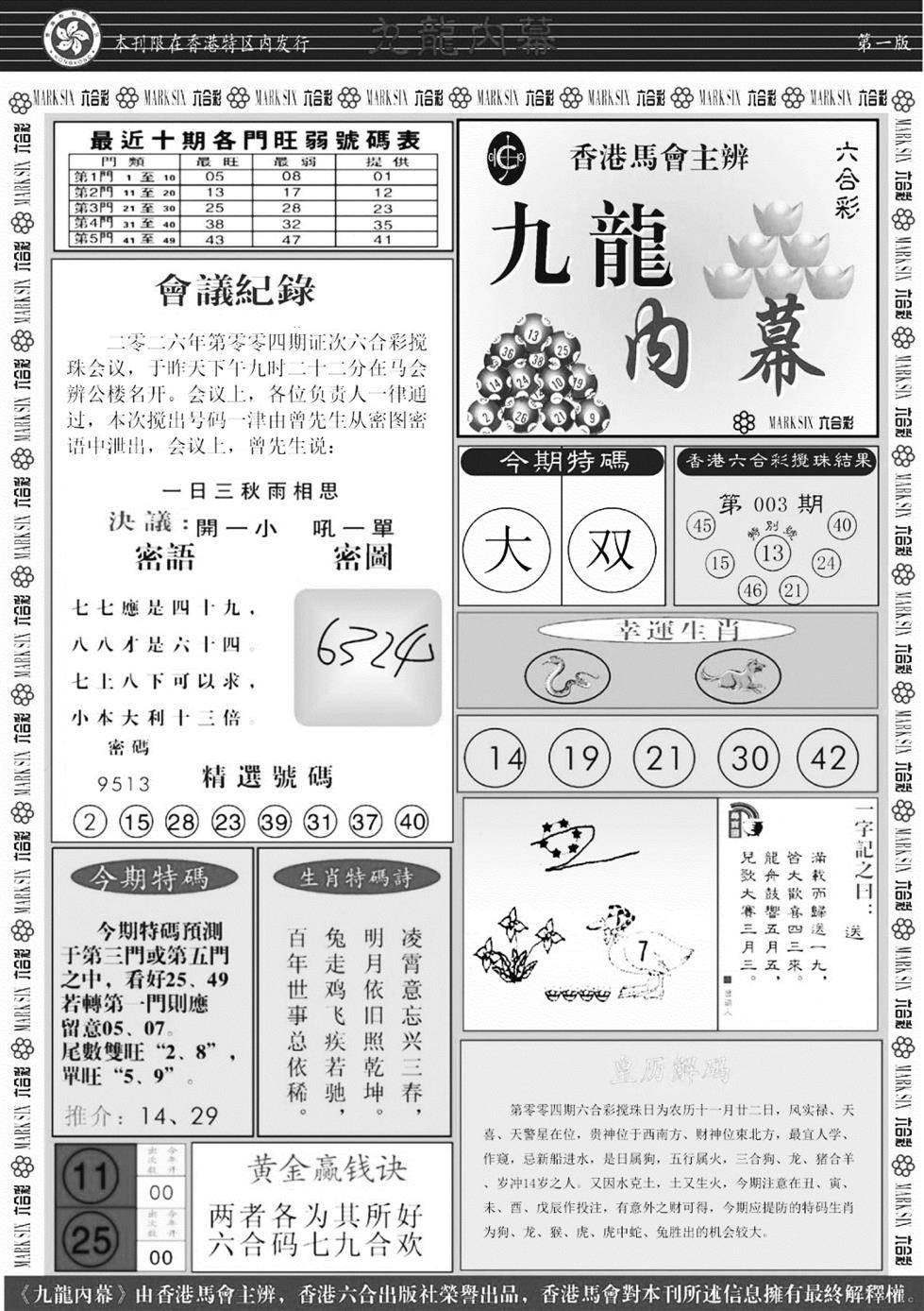 九龙内幕玄机报