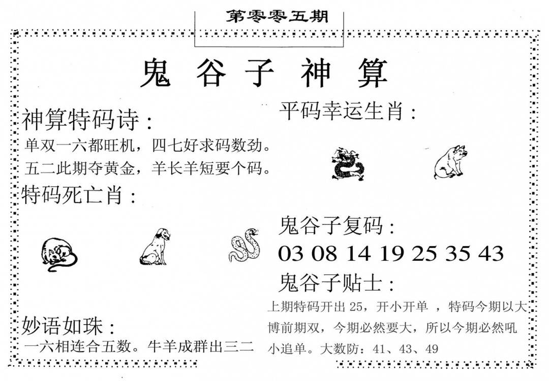 狗不理特码报