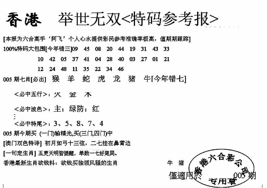 彩卷后庄A(保证香港版)