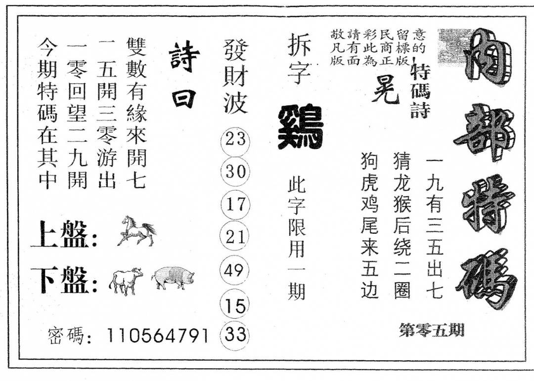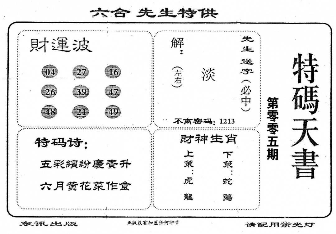 另版心水特码(早图)