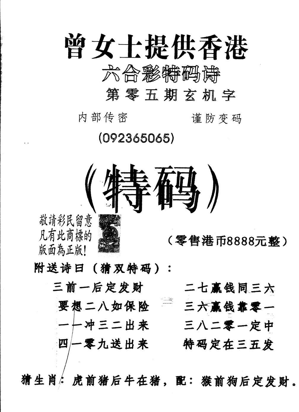 曾女士特码诗