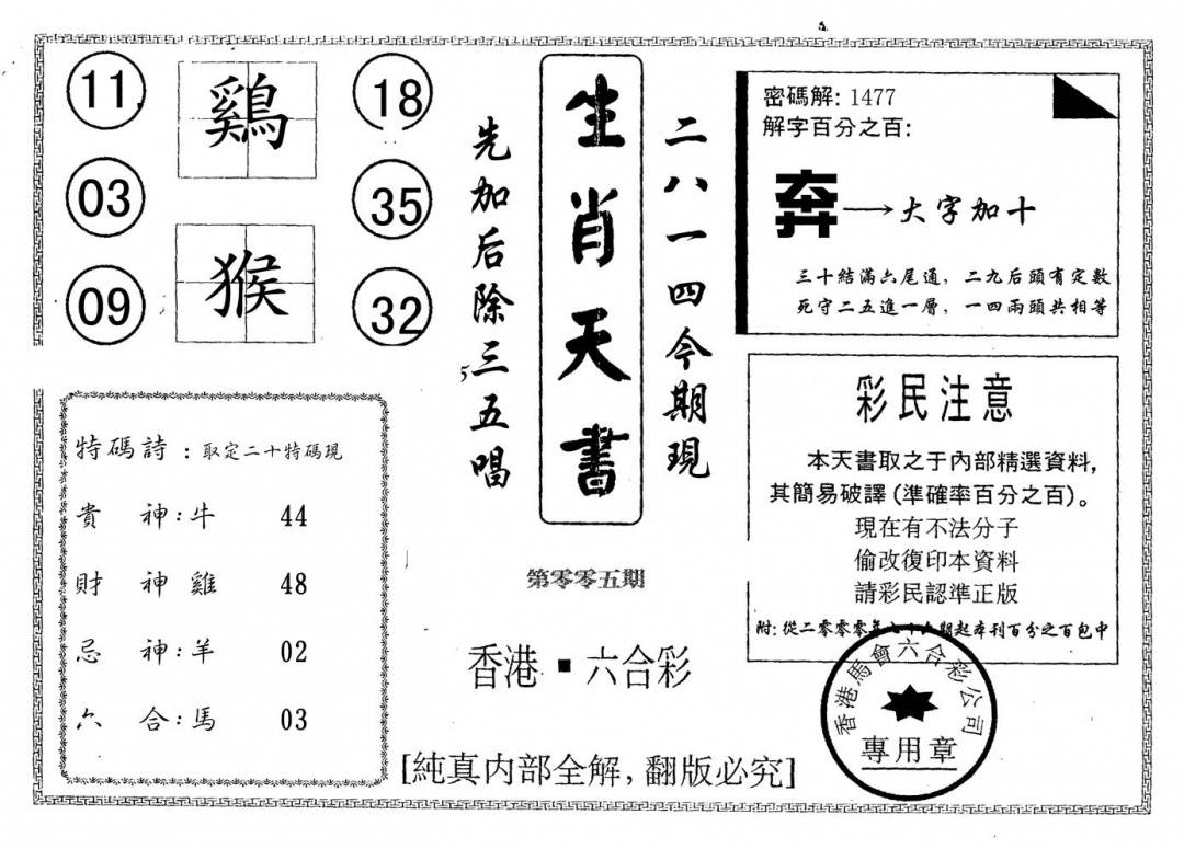 香港天机信封