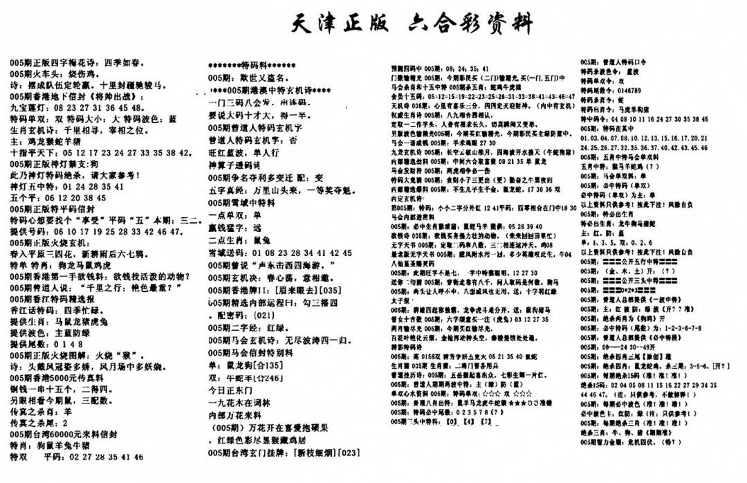 天津正版六合彩资料