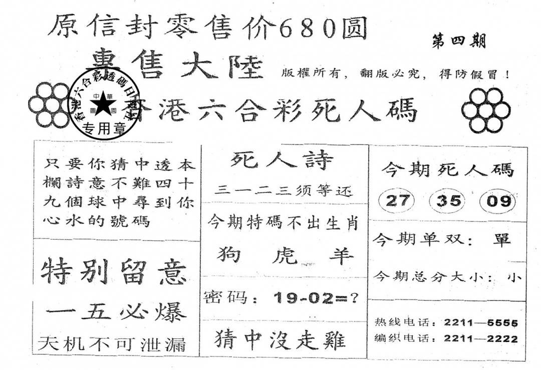 香港天机信封